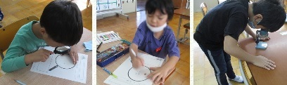 ハツカダイコンの種を観察しました。虫メガネや顕微鏡を使ってよく見ていました。「うすい茶色」「石みたい」「においはしない」「かたい」まど,いろいろと発表していました。また,3組の畑に植えたいと思います。植える日が楽しみです。
