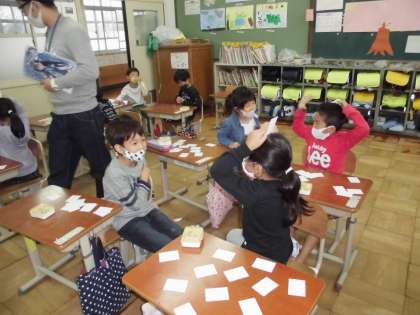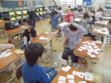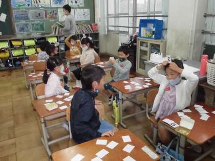 数の大きい小さいや,習ったたし算やひき算を頭で考えて,友達と楽しんでいました。