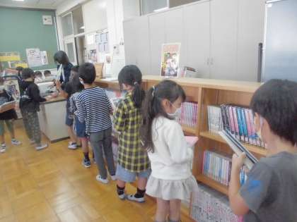 みんなで図書館へ行きました。涼しくなってきて,読書の秋の訪れを感じますね。