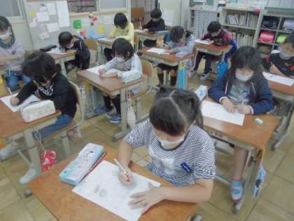 画の方向を意識して,書写の学習をしました。似ている字を書くときには,違うところに気をつけて書くとよいですね!
