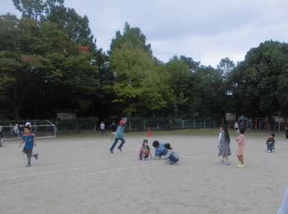みんなあそびで,色おにをしました。運動場を見まわしながら,捕まらないように上手に逃げることができていました。