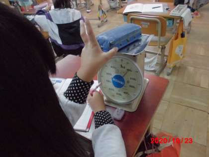 予想より重いものや軽いもの,予想通りの重さのものも見つかり,とても楽しく重さ調べができました。