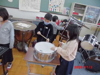 シンバルや大だいこなどを鳴らして,手でさわってみると,ふるえているのがよくわかりました。