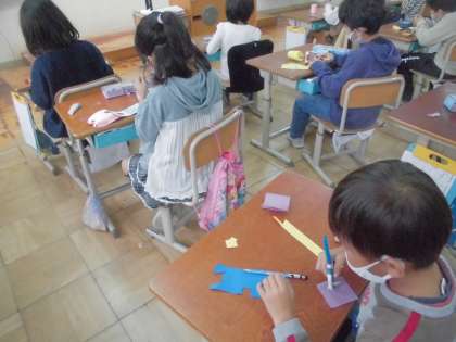 紙の輪を作って,どこにつけたいか考えました。どんな飾りをつけて,何に変身したいか考えながら,楽しく作りました。