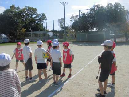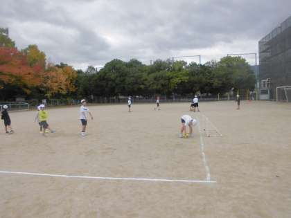 チーム練習をしてから,試合を行いました。シュート練習をしたり,みんなで円になってパスをしたりと,仲良く活動できました。
