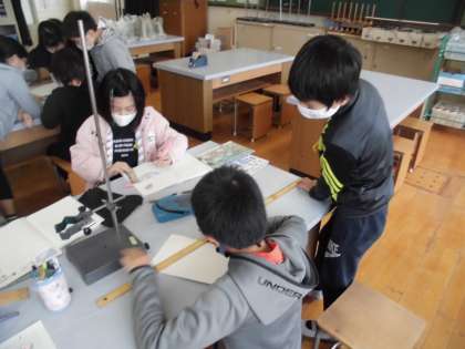 ふりこの動きについて学習をしています。班で協力して,ふりこの準備をしていました。テキパキとする姿が見られました。