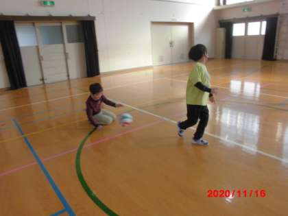 後半は,子どもたちの大好きなころがしドッジボールをしました。コートが円のため,いろいろな方向からボールが来るので,子どもたちもドキドキしながらボールをよけています。ボールをジャンプしたり,体をくねっとさせてよけたりと楽しそうでした。