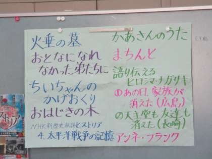 「火垂るの墓」や「おとなになれなかった弟たちに」の語りを,真剣な表情でじっくりと聞き入っていました。