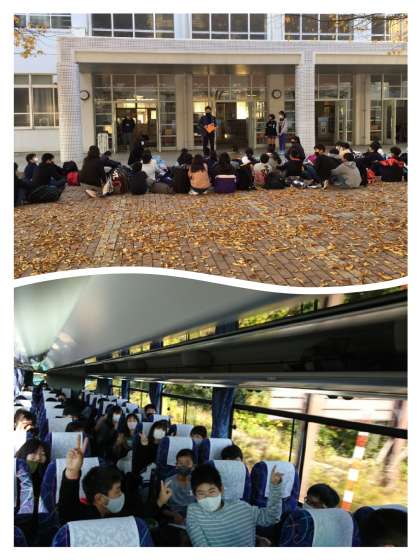 出発式とバス車内です。