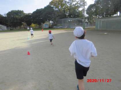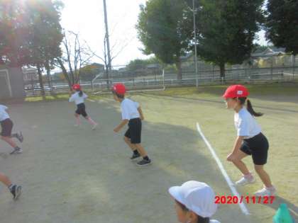 1年生は体育でゆっくりかけあしに取り組みました。最初に体ならしで,「ふえおに」をしました。鬼なので,追いかけるのを楽しんでいました。