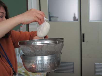 すりたての大豆のいい香りに喜びの声をあげながら,大豆の変身を楽しく感じることができました。