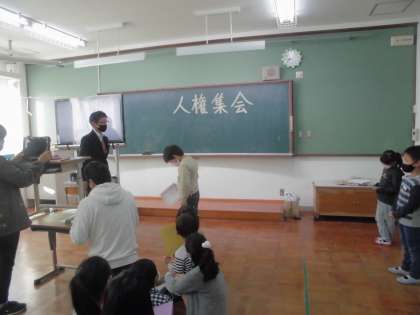 人権集会で,人権標語のの表彰や各クラスからの振り返り,校長先生からのお話がありました。人権について振り返るよい機会になりました。これからも仲良くあたたかい学校にしていきたいですね!