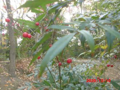ナンテンの実,アジサイの冬芽も見つけました。おもしろい種や大きな葉っぱも見つけました。