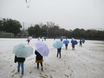 今週は雪が降ったので,みんなで学校の冬みつけをしました。