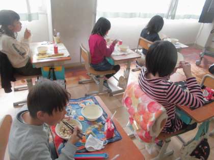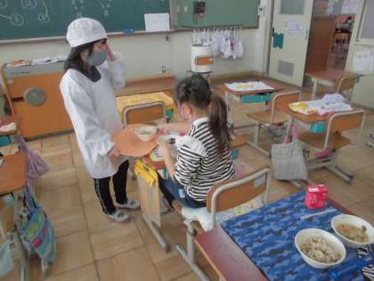 今日の給食は,学校に備えられている非常食を使って作られていました。いつ起こるか分からない災害に常に備えておくことが大切ですね!