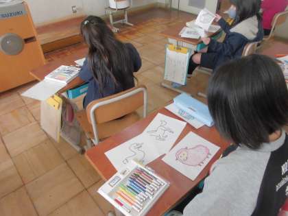 色を選んで,動物が出てくる絵本を作りました。色や動物の表現を確認しながら,楽しく取り組むことができました!