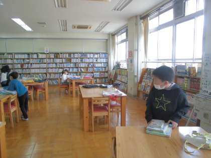 図書館に行って,本の返却をしました。一年間でたくさんの本を読むことができましたね。