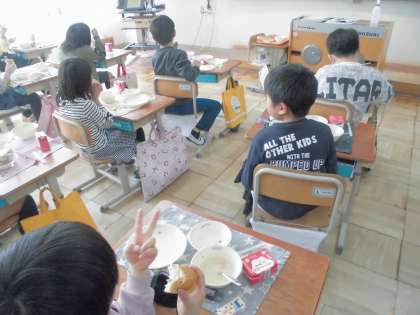 ツナごぼうサンドの具をパンにはさんで食べました。パンに切れ込みを入れるのは大変でしたが,自分で作るのが楽しかったですね!