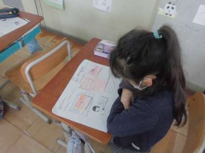 ありがとうカードを書いて,クラスの友達に渡しました。じっくりカードを読み「いつもの自分の行動を見ていてくれてうれしい」「やっぱりありがとうと言うことは素敵だと感じた」という思いをもちました。