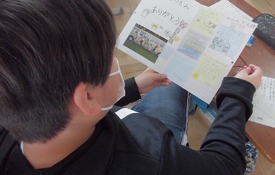 たてわりグループのメンバーから,「卒業おめでとうメッセージ」がつまった寄せ書きをプレゼントしてもらいました。
