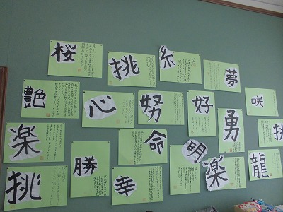 書写の授業で,「自分の好きな漢字一字」を書きました。