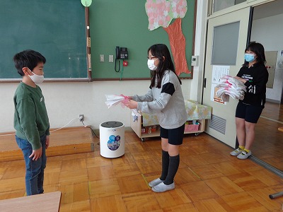 手作りの花束や,手作りのぞうきん,手作りのしおりは,各教室に配りに行きました。