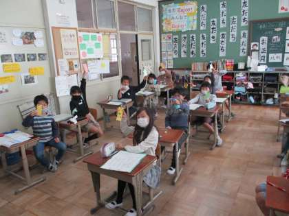 たてわりでお世話になった6年生から手渡しでしおりをもらうと,ちょっと照れながら,とても嬉しそうにありがとうを伝えていました。