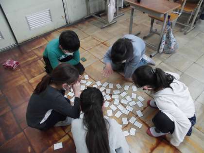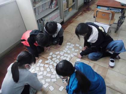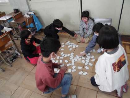 回数を重ねるごとに,上の句を聞いただけで取れるようになったり,十八番は必ず取ったりできるようになってきました!とても集中しています!