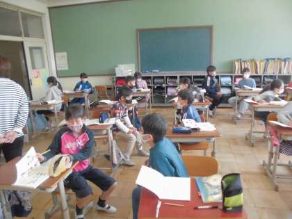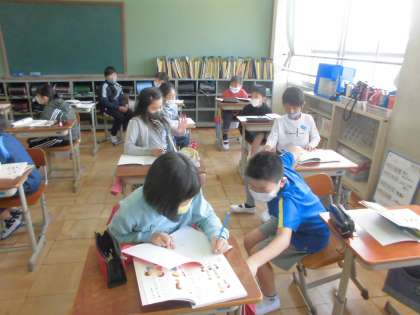 国語科で,インタビューした友達のことを,一文にまとめて紹介するという学習をしました。「マンガの主人公○○に会いたい,○○さんです。」や「実は○○がとても好きな○○さんです。」などなど,また自己紹介とは違った一面が見られた貴重な時間でした!