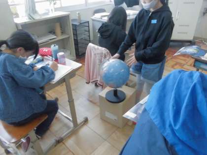 地球儀を見ながら,気付いたことを出し合いました。一つの地球儀からでも,たくさんの発見がありますね!