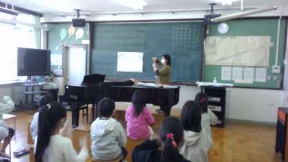 音楽家の学習では,手話を使い,メロディーに合わせる練習をしました。子どもたちは,先生のお手本をしっかりと確認して取り組むことができました。