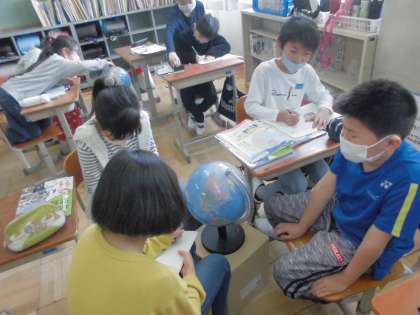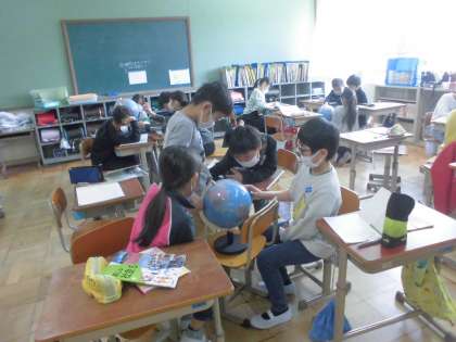 地球儀を使って,気付いたことを交流し,学習問題を作りました。