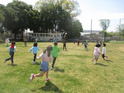 今日も芝生でおにごっこやかくれんぼをしている子がたくさんいました。