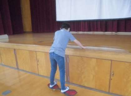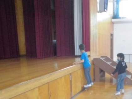 最初は,ボードに乗るのも大変そうでしたが,慣れると支えをもって横にすいすいと移動していました。