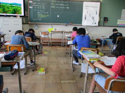 京都府の様子について学習している4年生。今日は土地の利用について学習しました。地図をもとに田畑や果樹園,市街地などいろいろな土地の利用があることがわかりました。