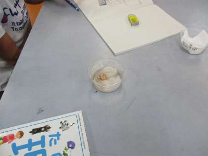 インゲンマメの実験をしています。実験を通して,発芽に必要な条件を考えていこう!