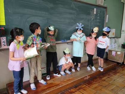 「ふきのとう」の学習で音読劇の練習をしています。