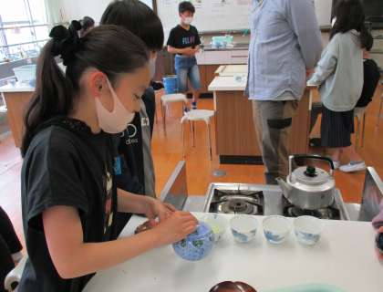 家庭にある用具を使って,お茶をいれました。班で協力しながら丁寧に活動することができました!