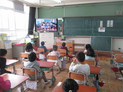 各学年が作った,学校のきまりや1年生へのメッセージの動画を見る形で行いました。