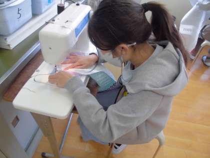 5年生の「ランチョンマット」作りのことを思い出し,上手にミシンを使っていました。