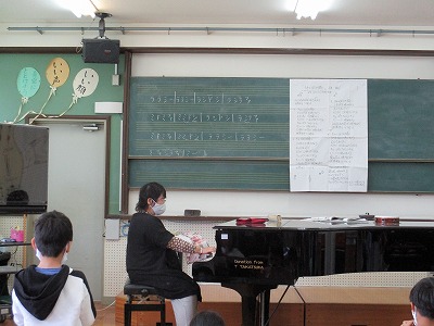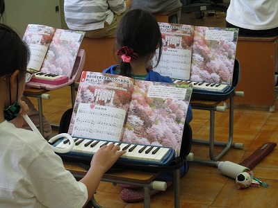 音楽の学習で「さくら さくら」の演奏をしている4年生。前回,リコーダーで練習したのですが,今日は鍵盤ハーモニカも使い,演奏しました。拍に合わせながら丁寧に演奏することができました。