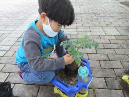 自分だけの野菜の苗に,大喜びの子どもたち。