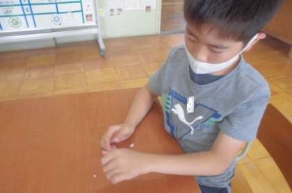 今日は綿のたねを観察しました。「かたいけど,まわりはふわふわ」など,前回のとうもろこしとちがう点もみつけていました。