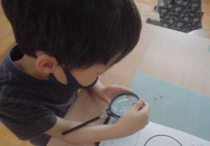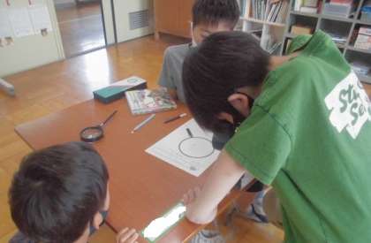 虫メガネや顕微鏡でも見てみました。「何色の花がさくのかな?」と生長を楽しみにしているようでした。