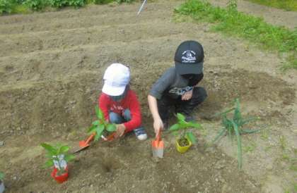 観察の後,畑に行って,苗を植えました。慣れた手つきでポットから苗を出して,植えていました。たっぷり水もあげました。大きくなるのが楽しみですね。