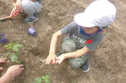 3くみ やさいのなえを はたけにうえたよ