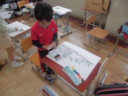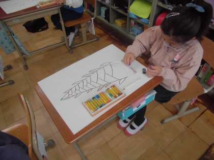みんなタケノコをよく見て,細かいところまでがんばってかいていました。きれいに色も塗っていて,完成が楽しみです。