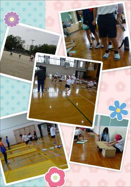 高学年のスポーツテストを行いました。各ペアで協力しながらソフトボール投げ,握力,長座体前屈,反復横跳び,立ち幅跳びの記録を計測しました。