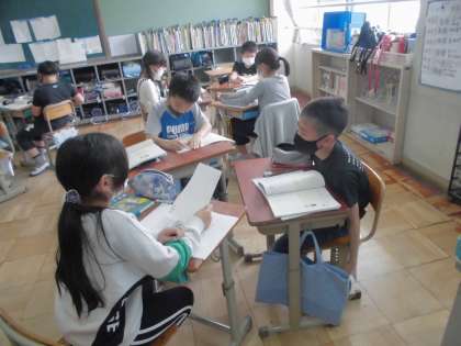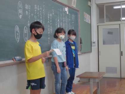 「話の意図を考えて聞き合い,「きくこと」について考えよう」という学習課題に向けて,学習を進めてきました。グループを作り,互いにインタビューをして,インタビュー内容の報告をしました。みんな意欲的に話し合い活動に取り組んでいました。