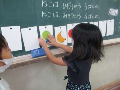 今日の「なんばんめ」の学習では,習った言い方で,絵合わせゲームをしました。